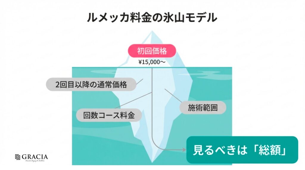 - 継続して通える場所と価格か? ルメッカは複数回通うことが前提です。自宅や職場からアクセスしやすく、無理なく通い続けられる立地であること。そして、2回目以降の通常料金やコース料金が、あなたの予算の範囲内であることは、治療を最後までやり遂げるために非常に重要です。