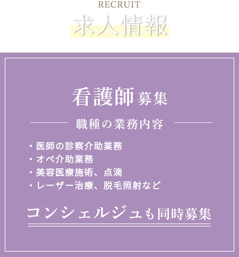 元々自分が美容クリニックに通っていたり、二重整形をしたという事もあり、美容の看護師に興味がありました。