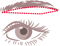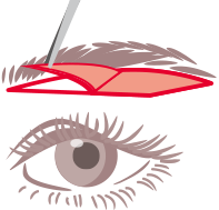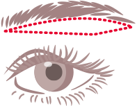 眉毛の下のラインに沿って切開・除去することで、目が大きく見えるようになり、はっきりとした二重のラインが出てきます。